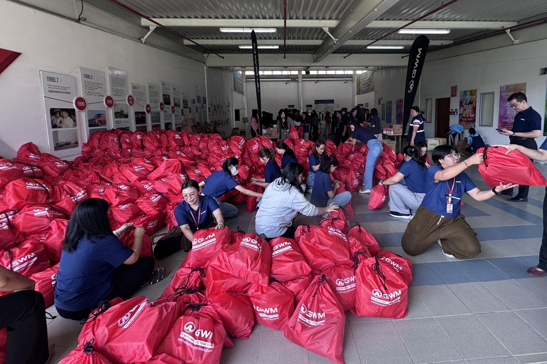 กิจกรรมครั้งนี้จัดขึ้น ณ GWM Smart Factory จังหวัดระยอง นำโดยทีมผู้บริหาร พร้อมด้วยพนักงานจากกรุงเทพฯ และระยอง ร่วมแรงร่วมใจบรรจุสิ่งของจำเป็นในชีวิตประจำวัน อาทิ อาหารแห้ง น้ำดื่ม ยารักษาโรค และของใช้ที่จำเป็นสำหรับการดำรงชีวิต เพื่อให้ผู้ประสบภัยสามารถนำไปใช้บรรเทาความเดือดร้อนได้ทันที หลังจากเสร็จสิ้นการบรรจุ ได้ลำเลียงขึ้นรถเพื่อเตรียมจัดส่งลงสู่พื้นที่ภาคใต้ โดยจะส่งมอบให้หน่วยงานในพื้นที่เพื่อกระจายความช่วยเหลือไปยังชุมชนที่ได้รับผลกระทบอย่างทั่วถึง
