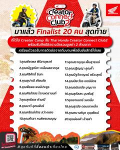 รถจักรยานยนต์ฮอนด้า – ททท. เปิดฉากความมันส์สายท่องเที่ยว คัด 20 ครีเอเตอร์ทั่วไทยเข้ารอบสุดท้าย ลุยภารกิจเฟ้นหาผู้ชนะ “Thai Honda Creator Connect Club 2 : สุขทันทีที่ขี่ฮอนด้าเที่ยวไทย”