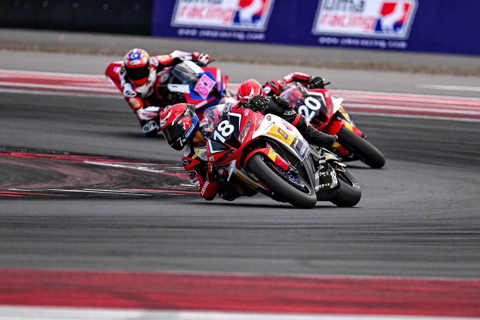 “ไฮเปค” กฤษฎา ธนะโชติ บิดรถแข่ง Honda CBR600RR หมายเลข 18 ออกสตาร์ตการแข่งขันจากกริดที่ 10 โชว์ฟอร์มแซงสุดเดือดขึ้นมาคว้าท็อป 4 ได้สำเร็จ ตามมาด้วย “มิกซ์” ธนัช ละอองปลิว หมายเลข 31 ที่โชว์ผลงานได้ไม่น้อยหน้ากัน ออกสตาร์ตการแข่งขันจากกริดที่ 13 เข้าเส้นชัยเป็นอันดับที่ 5 ทางด้านของ “ข้าวกล้อง” จักรีภัทร พฤฒิสาร หมายเลข 20 เริ่มต้นเกมจากกริดที่ 16 แซงเข้าเส้นชัยอันดับที่ 11