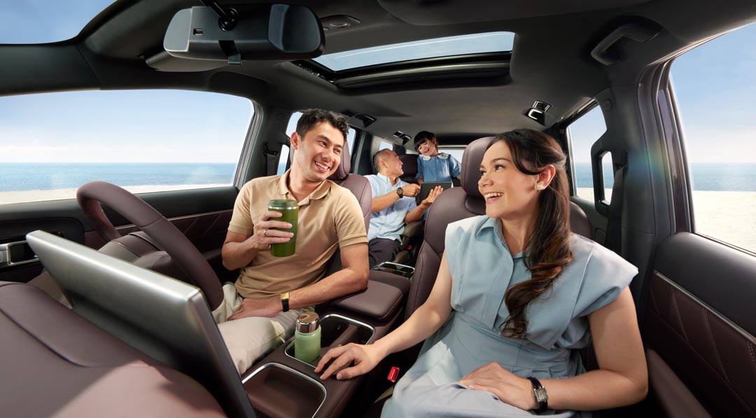 ภายในห้องโดยสาร WULING STARLIGHT DARION EV มาพร้อมการจัดที่นั่งแบบ 2+2+3 ช่องทางเดินแถวสองกว้าง 230 มม. พื้นที่เหนือศีรษะแถวสามสูงกว่า 1.2 เมตร และพื้นที่เก็บสัมภาระยืดหยุ่นตั้งแต่ 315 ถึง 1,202 ลิตร ด้วยการพับที่นั่งแถวสามแบบพับได้ด้วยมือเดียว พร้อมช่องเก็บของ 25 จุดทั่วคัน จอกลาง 12.8 นิ้ว และชาร์จไร้สาย 50W เพื่อการเดินทางที่สะดวกสบายและชาญฉลาด